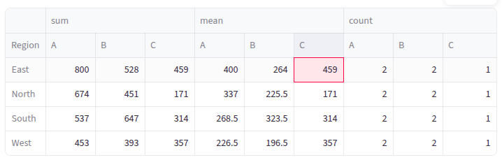 | Multiple aggregations | pd.pivot_table() | Supports multiple aggfuncs |