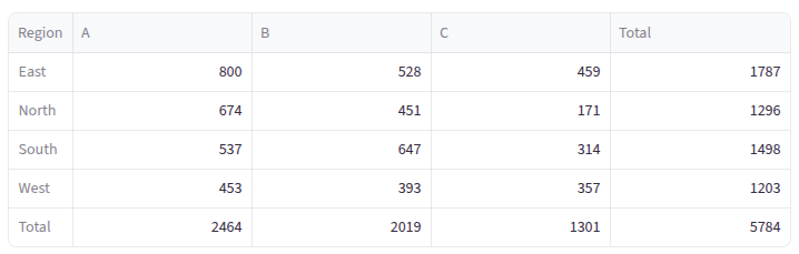 margins_name='Total' # Label for total row/column