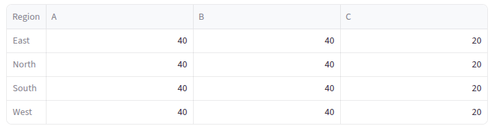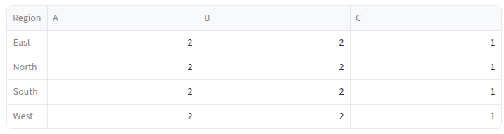 - How many times each Product-Region combination occurs